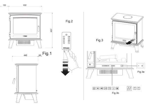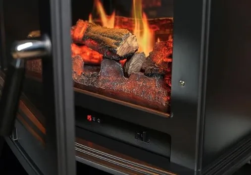 Heldere beglazing en geïntegreerde bovenverlichting versterken het vuurbeeld, zelfs bij weinig licht. De openklapbare deur en realistische houtdecoratie maken de beleving compleet. Met één druk op de knop regelt u de vlammen, het geluid en de temperatuur, via het display of de afstandsbediening.