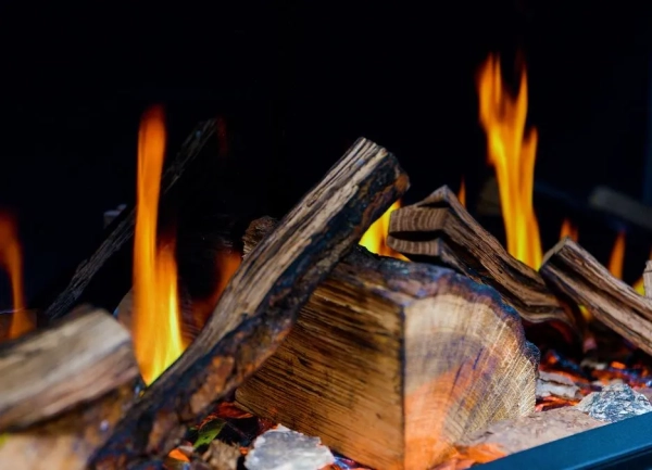 - De Luminosa wordt standaard geleverd met gloeiende berkenstammen en vier gloeiende blokken in eikenhouten look. U kunt de haard inrichten met de blokken die u het mooist vindt. Daarnaast is er optioneel een stammenset van echt eikenhout beschikbaar, zonder gloeieffect, ter vervanging van de gloeiende blokken.
