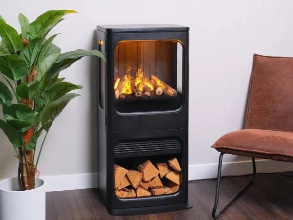 In de kachel creëert de Optimyst technologie een levensecht vuurbeeld met zwevende vlammen en waterdamp. Samen met de houtset en het knisperende geluid ontstaat een haardervaring die nauwelijks van echt te onderscheiden is.