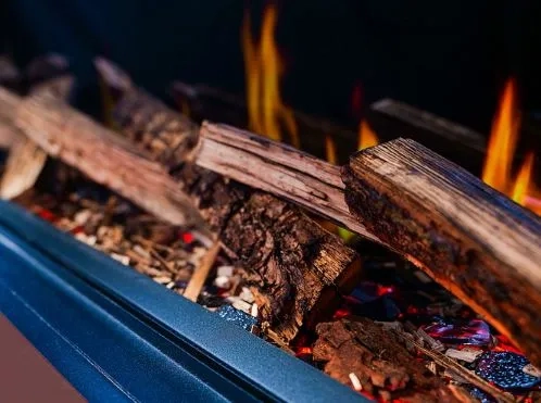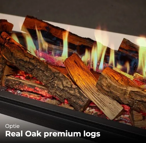 - De Luminosa wordt standaard geleverd met gloeiende berkenstammen en vier gloeiende blokken in eikenhouten look. U kunt de haard inrichten met de blokken die u het mooist vindt. Daarnaast is er optioneel een stammenset van echt eikenhout beschikbaar, zonder gloeieffect, ter vervanging van de gloeiende blokken.