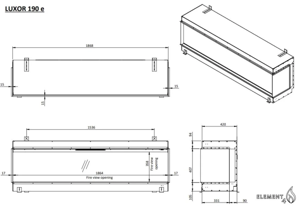 Met zijn flexibele ontwerp kan de Luxor 190 E zowel als front-, tweezijdig of zelfs driehoekig model worden ingebouwd, waardoor je de perfecte opstelling kunt kiezen die past bij jouw ruimte.